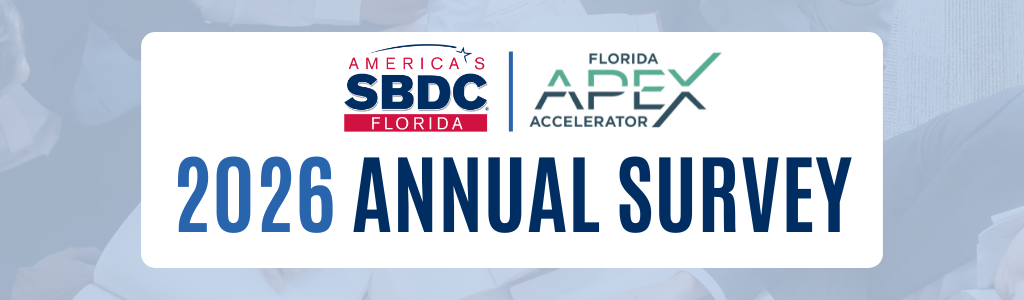 © 2025 - State Designated as Florida's Principal Provider of Business Assistance [§ 288.001, Fla. Stat.] A statewide partnership program nationally accredited by the Association of America’s SBDCs and funded in part by the U.S. Small Business Administration, Department of Defense, State of Florida, and other private and public partners, with the University of West Florida serving as the network’s headquarters. Florida SBDC services are extended to the public on a nondiscriminatory basis. Language assistance services are available for individuals with limited English proficiency.